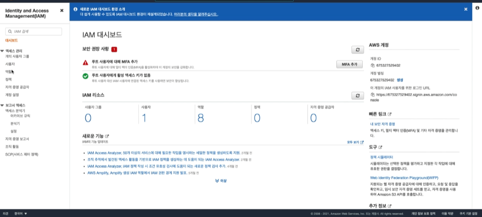 루트사용자, IAM 사용자 2가지 옵션 존재