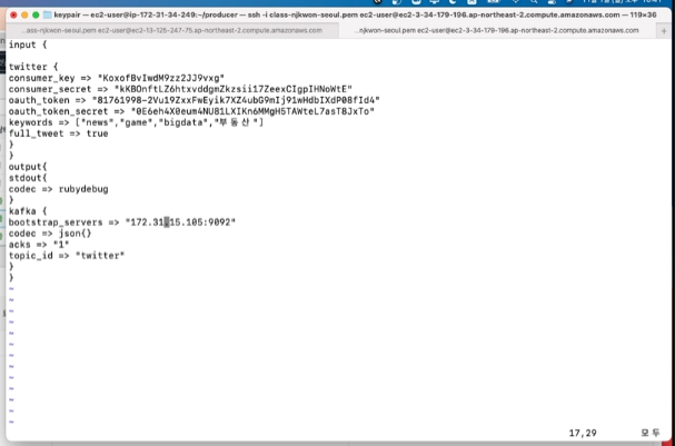 logstash 설치 -> 트위터 데이터를 받아서 넣어줌