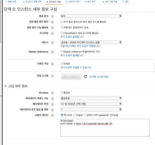 고급 세부 정보에 자바 설치하는 커멘드 넣기