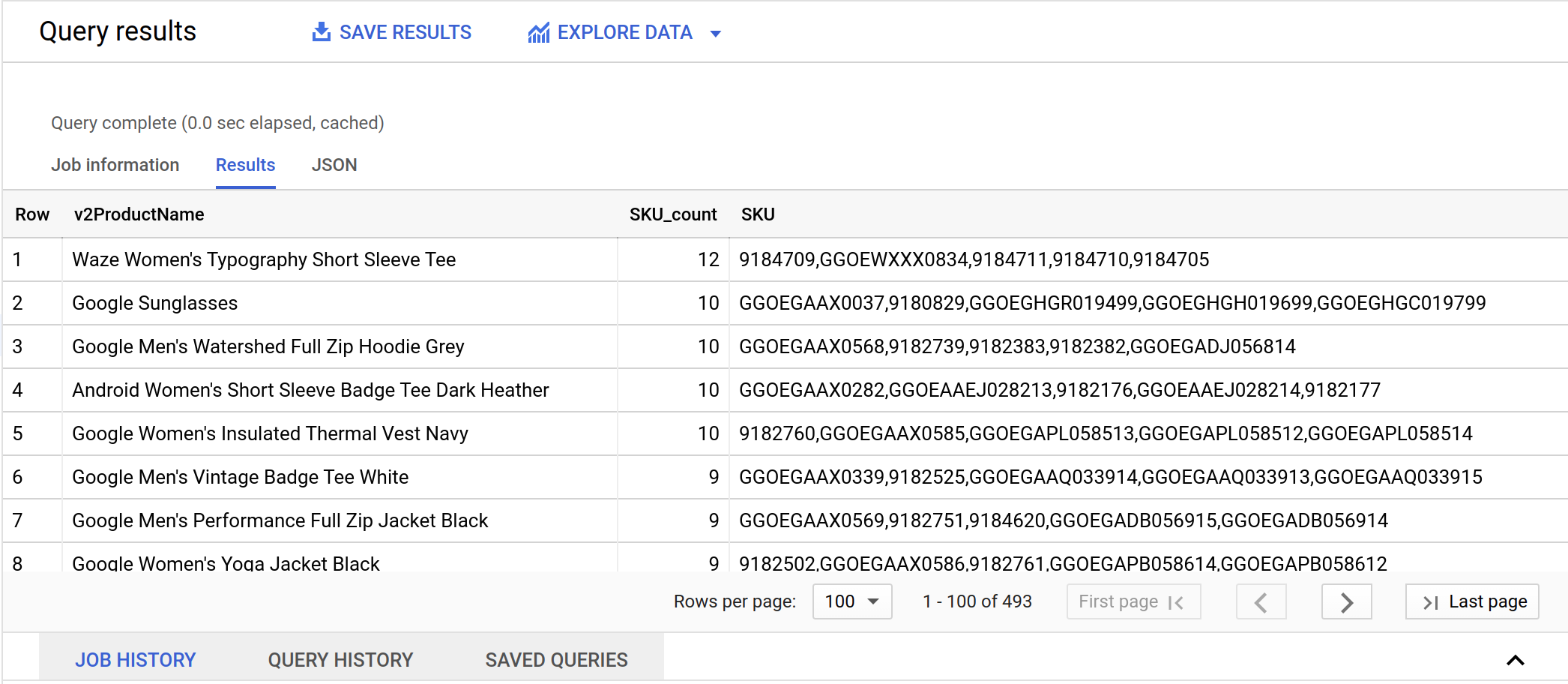 Clear the previous query and run the below query to confirm using one of the specific SKUs from the website dataset.