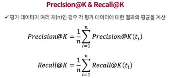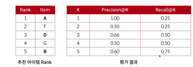 추천 결과의 개수가 K개일 때 Precision & Recall