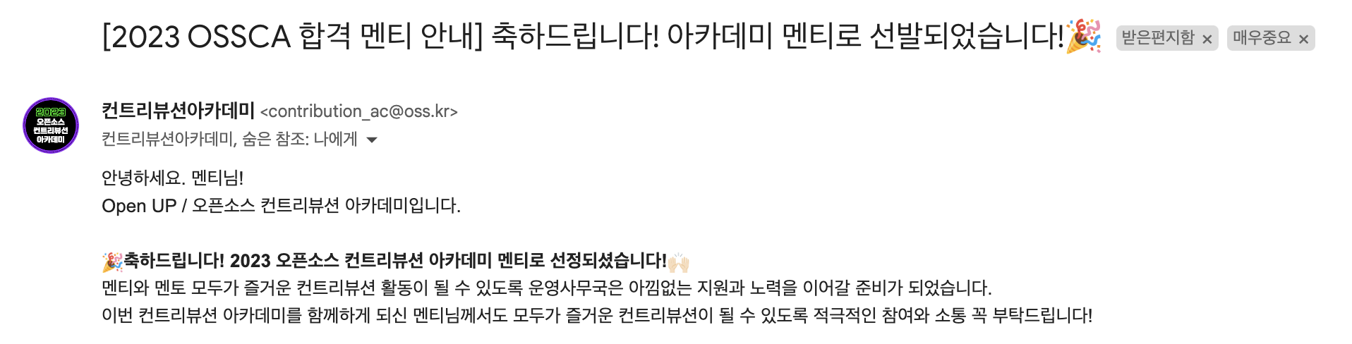 다음 사진은 2023 오픈소스 컨트리뷰션 아카데미 멘티모집 자료이다.