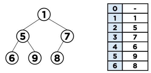 - 완전 이진 트리이기 때문에 빈 값이 없는 일차언 배열로 표현 가능