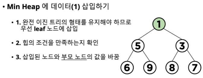 - 데이터 추가, 삭제 후에도 힙의 속성을 유지 해야함