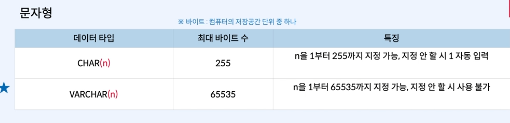 varchar를 더 많이 쓴다.