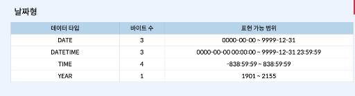 날짜형 데이터 타입