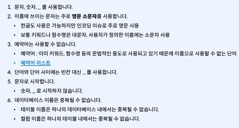 데이터 베이스 이름 정하기 규칙