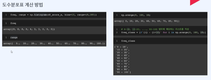 - 분할된 구간과 데이터의 개수를 표로 정리한 것