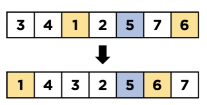 피봇을 정하고 피봇을 기준으로 값을 앞 뒤로 정렬한다.