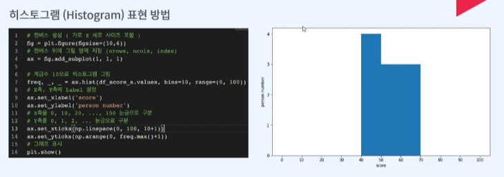 - 데이터가 가지는 값들을 구간으로 나누고 각 구간에 데이터가 포함되는지 세는 방법
